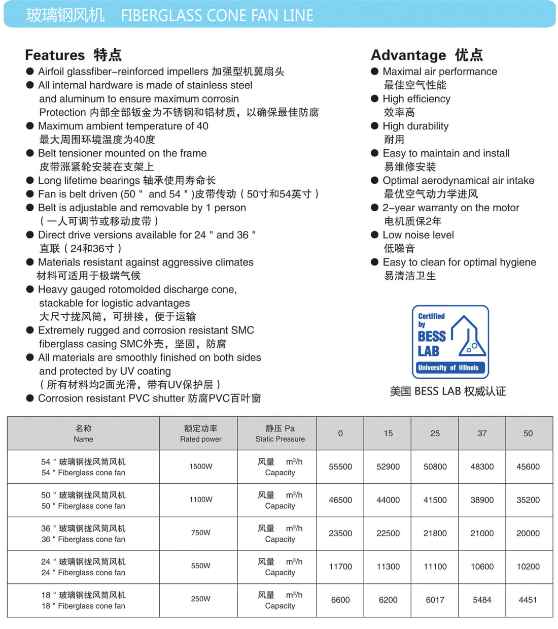 Agrifan新款玻璃鋼風(fēng)機(jī),采用空氣動(dòng)力學(xué)設(shè)計(jì),重新定義新通風(fēng)標(biāo)準(zhǔn)三大主要指標(biāo):空氣性能,風(fēng)機(jī)效率和風(fēng)量比。通過更高的產(chǎn)品性能和風(fēng)量來(lái)滿足高效(縱向通風(fēng)/橫向通風(fēng))和溫室需求,以耐用可靠的優(yōu)點(diǎn), Agrifan玻璃鋼風(fēng)機(jī)以較低的成本保證新鮮的空氣。