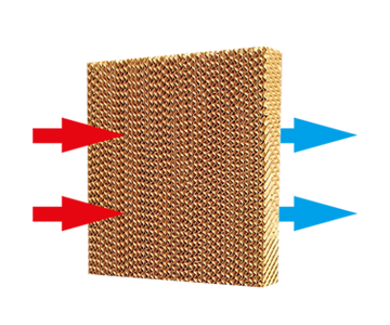在現(xiàn)代畜牧業(yè)通風(fēng)技術(shù)中,濕簾和風(fēng)機(jī)搭配的縱向通風(fēng)降溫組合是經(jīng)濟(jì)有效的降溫通風(fēng)措施,濕簾的波紋纖維紙表面有一層水膜,室外干熱空氣通過(guò)負(fù)壓風(fēng)機(jī)的抽吸作用穿過(guò)濕簾,水膜吸收空氣中的熱量,經(jīng)處理過(guò)的涼爽空氣進(jìn)入室內(nèi),同時(shí)將室內(nèi)的污濁空氣排出去。